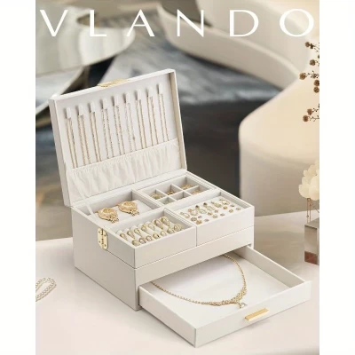 Large Capacity Triple Drawer Jewelry Box with Rotating Tray for Necklaces, Rings, Earrings, Bracelets, Jewelry Organizer, Accessories Storage, Gift, Birthday, Women, Ivory