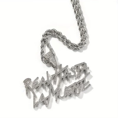European and American new zirconium inlay double layer letter pendant necklace jewelry men versatile hip hop rap trendy brand accessories