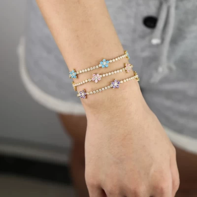 European and American new flower inlay zirconium full zirconium bracelet pink purple fashion versatile women's bracelet