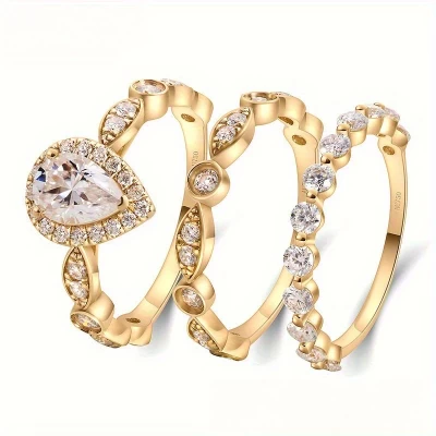 18K Gold Plated Ring Set, D Color, Unisex Jewelry, Holiday Wedding, Love, Boyfriend, Classmate
