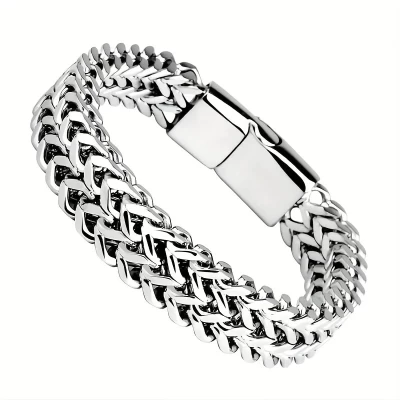Men's Stainless Steel Braided Wrist Watch with Magnetic Buckle - Casual, Non-Plating