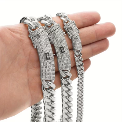 Men's Jewelry Titeanium Polished Cuban Cipher Chain Micro Inlay Synthetic Zirconium Buckle Necklace Europe and America